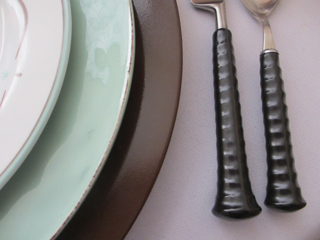 Flatware is "Fluence" by Oneida - it is my absolute favorite stainless flatware. I love the sleek, seamless handles. |